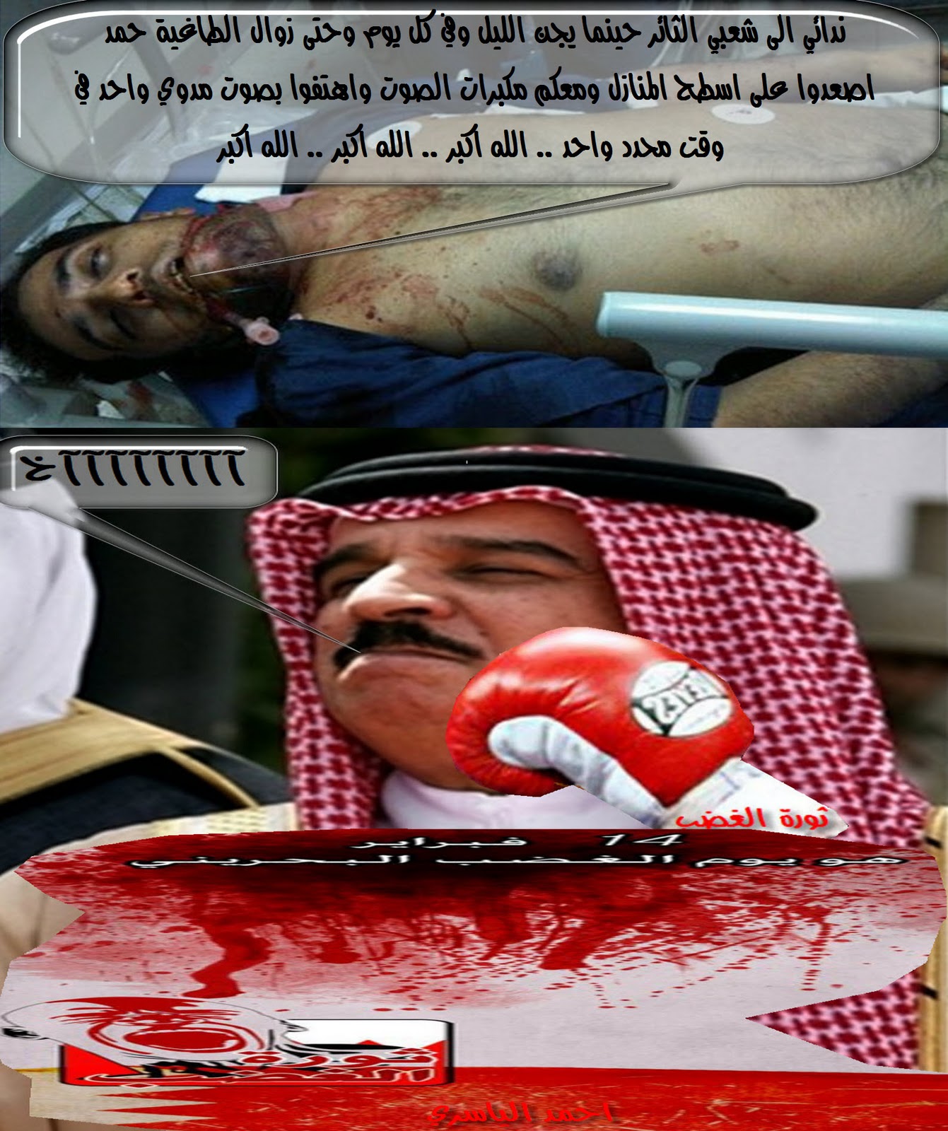نصرة لشعب البحرين الابي نضع بين ايدي الانسانية هذا التقرير الموثق بالصورة والفيلم لجرائم طاغية البحرين حمد ال خليفة ومرتزقته وحلفائه ال سعود يتم تحديثه في كل يوم بجديد جرائم ال سعود وال خليفة فتابعوه في كل وقت واوصلوه الى كل مكان وفي اي زمان لنسجل للتاريخ اقذر جرائم الطغاة الجرب ..